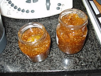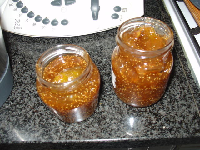 Juntar tudo,deixar ferver em lume brando até atingir o ponto estrada(deite um pouco de doce num pires e com 1 colher veja se faz uma espécie de estrada.Retire e meta em frascos esterilizados