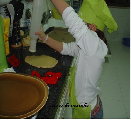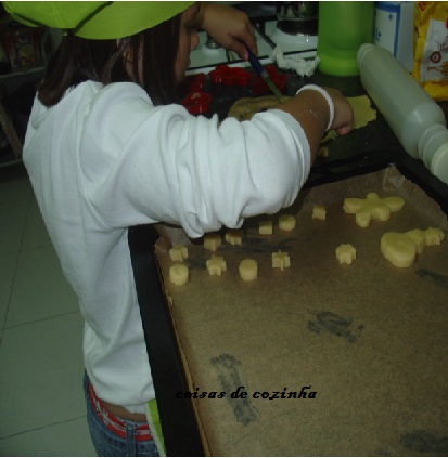 Deu-me umas forminhas que vinham junto de uma "prenda que ela comprou" e zás mãos à obra...."vamos fazer bolachas ,vó?