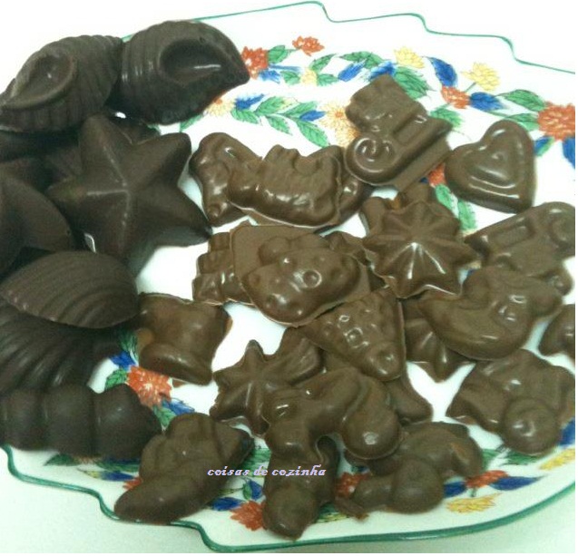 Com chocolate de leite e numas forminhas próprias fiz uns quantos para eles se deliciarem!