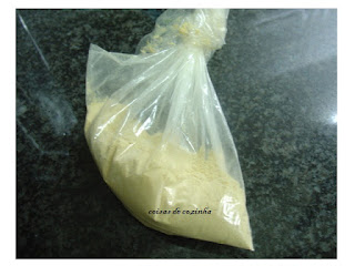 Num saco pasteleiro,ou num saco de plástico forte deite a massa.Num um dos cantos (do saco) faça um corte e comece.Prepare o tabuleiro de ir ao forno e faça montes.Leve ao forno préviamente aquecido e deixe cozer.Mais ou menos 15 min.Quando estiverem lourinhos retire e deixe arrefecer .